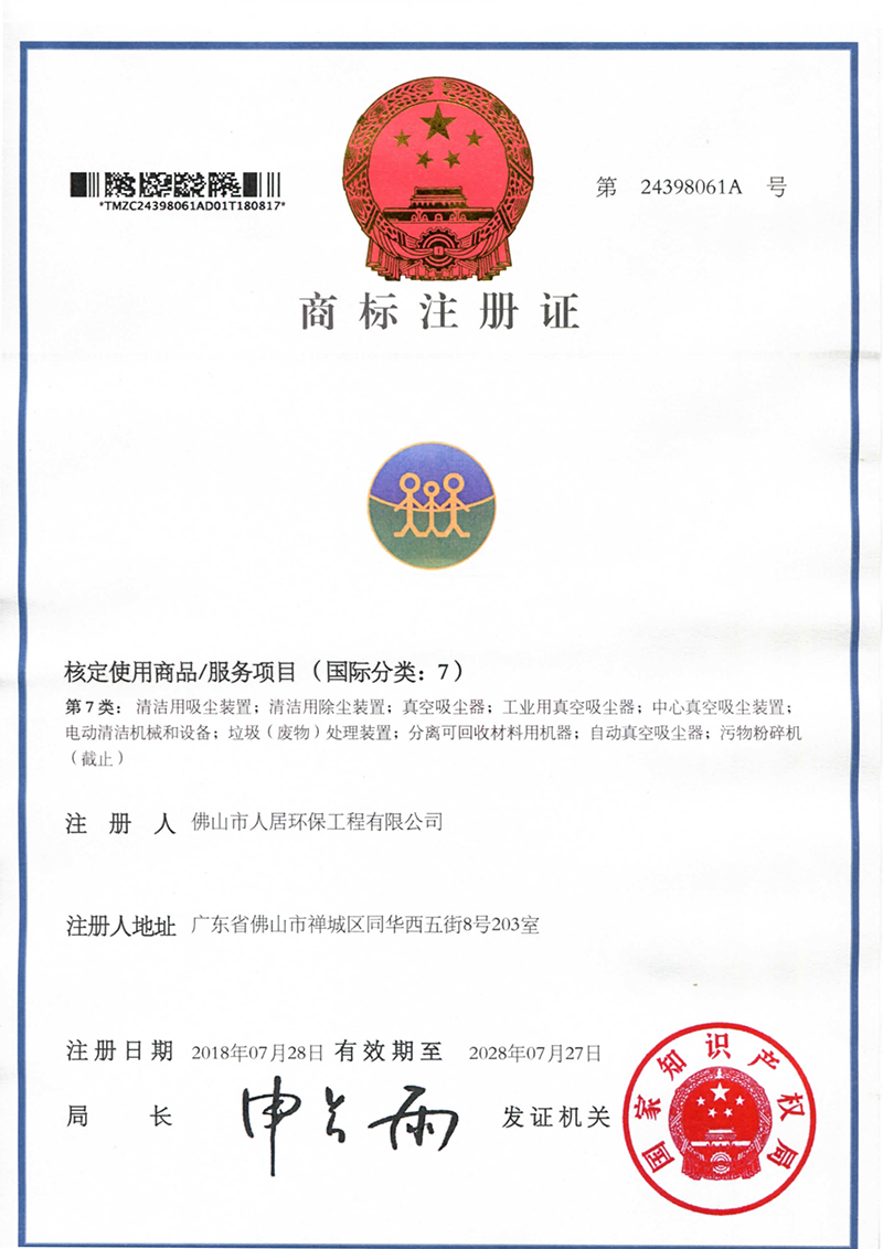 商標(biāo)證注冊1(人居-2018)