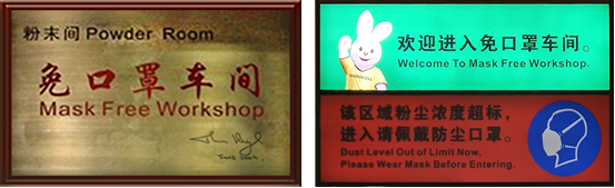 1、“免戴口罩車間” 匾牌和電子顯示屏的照片